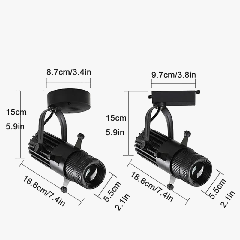 This ceiling light supports daily illumination in homes and workspaces and fits well within a modern interior. The adjustable aperture allows the beam to be adapted to different tasks. The aluminium body and COB LED source contribute to practical use in kitchens living areas shops and hallways. The adjustable range allows the fixture to operate as either a focused spotlight or a wider beam depending on the selected setting.